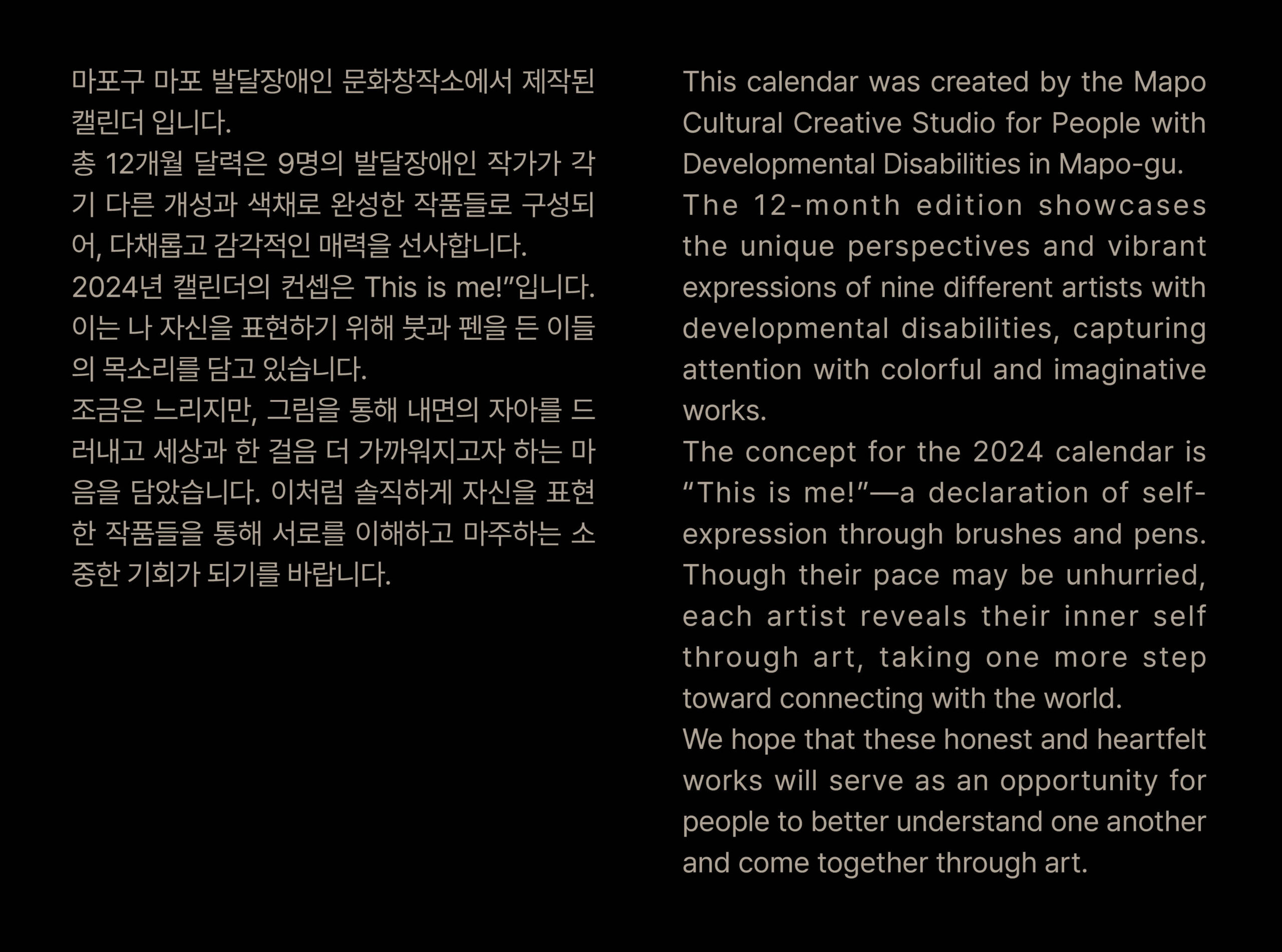 <마포발달장애인문화창작소> Calendar catalog.